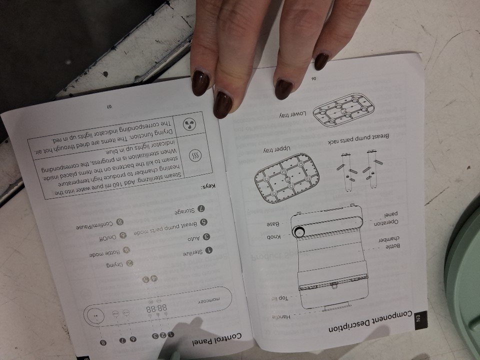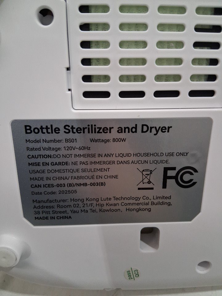some water marks inside of bottle sterilizer and item was tested for power only, see photos.
