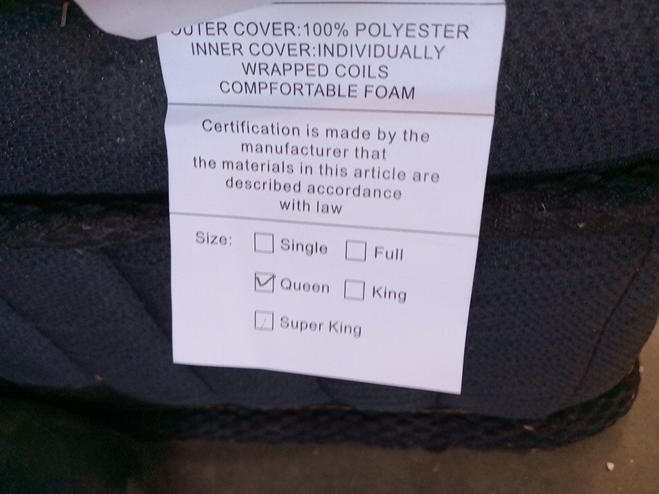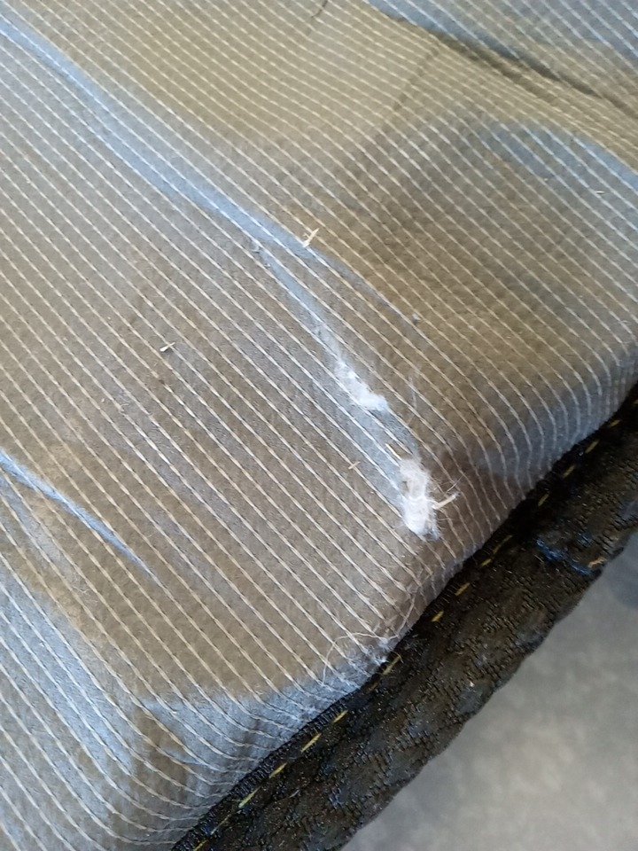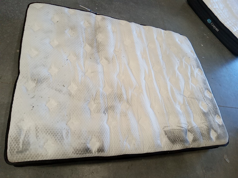 Item is dirty and has some tear at the bottom of the mattress from loose shipping/storage.