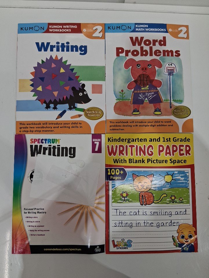 4 ASSORTED "LEARN TO WRITE" activity books - grades K-7