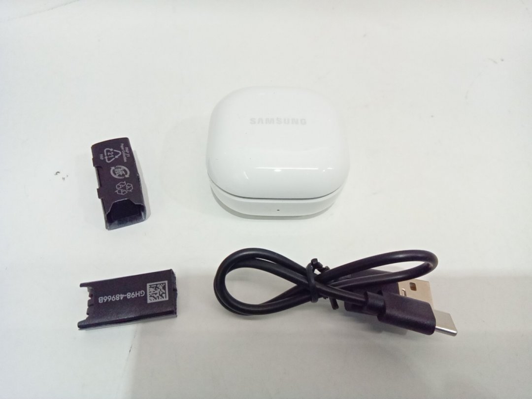 Residue in tips from prior use. The hinge is slightly misaligned on the case and sticks out, but does not appear to affect function. USB-C cable is a replacement. Please see photos.
