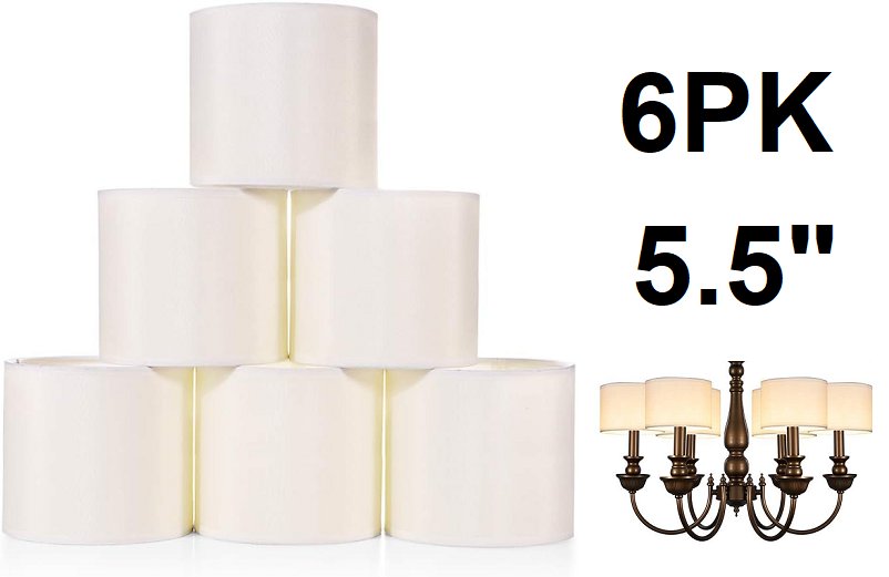 6PK WELLMET SMALL clip on drum LAMP SHADES - 5.5" - cream WHITE
