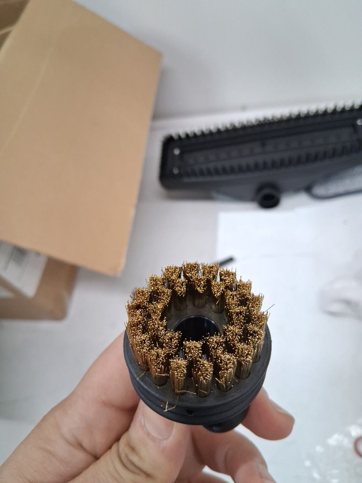please note a couple of the brush attachments are slightly frayed from improper protection packaging