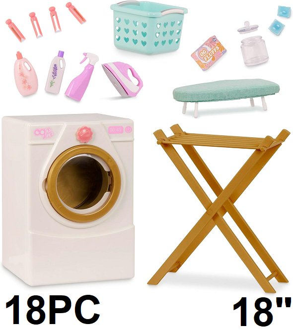 18PC Our Generation Doll House Laundry Day Accessories - 18" - white/multicolored