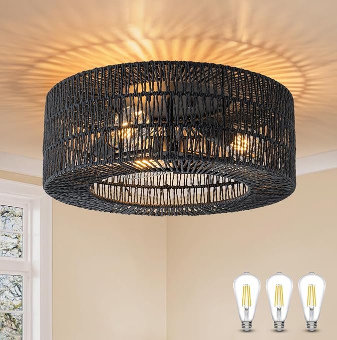 SineRise Flush Mount Hand-Woven Ceiling Light Fixture - 18" - black