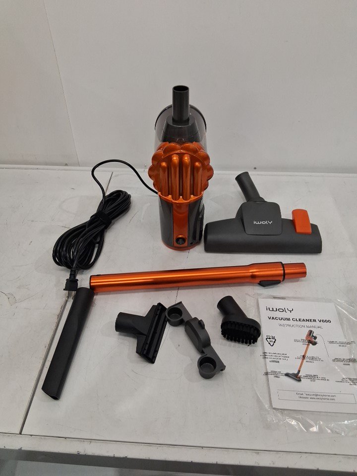 IWOLY 2-IN-1 BAGLESS STICK & HANDHELD CORDED VACUUM CLEANER - ORANGE/BLACK (MODEL: V600)