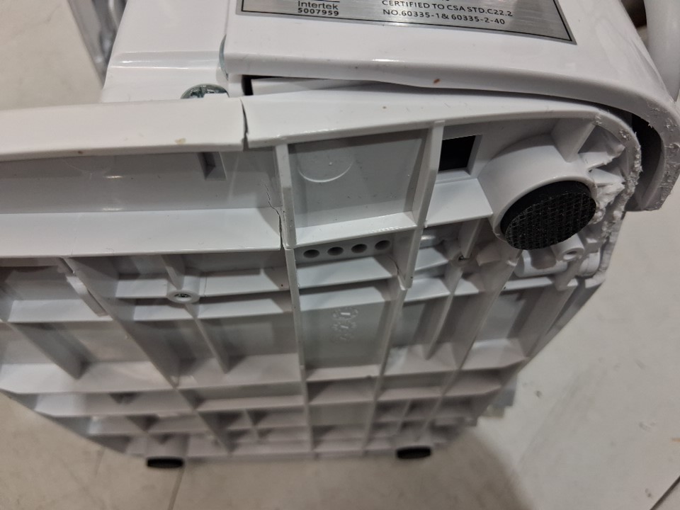Cracked casing near bottom. Tested for power and fan only. See photos.