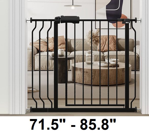 WAOWAO EXTRA WIDE PRESSURE MOUNT WALK THROUGH, SWING AUTO CLOSE SAFETY BABY GATE - 71.5" - 85.8" - BLACK (MODEL: W046)