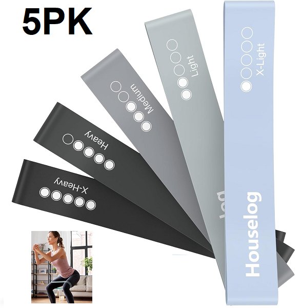 5pk Houselog Resistance Bands Tension Bands for Exercise with 5 Different Resistance Levels - grey/black/blue