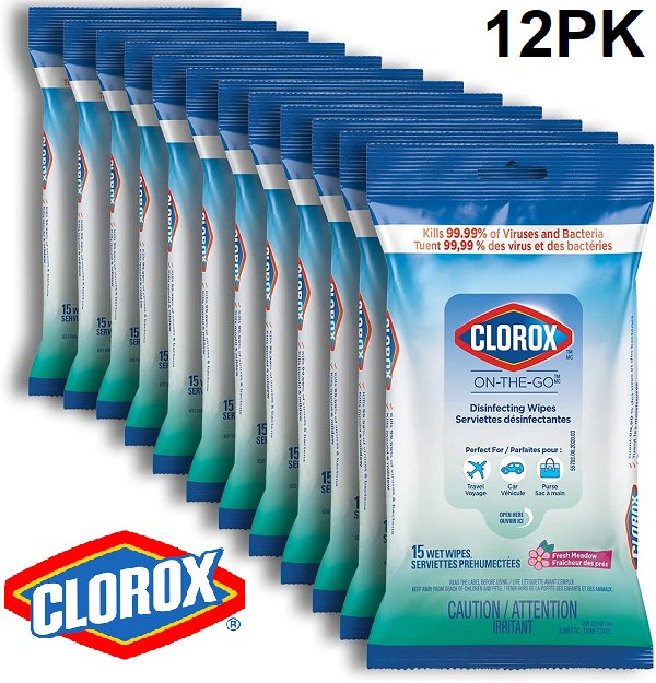 12PK CLOROX ON-THE-GO DISINFECTING WET WIPES - FRESH MEADOW SCENT (MODEL:55833)
