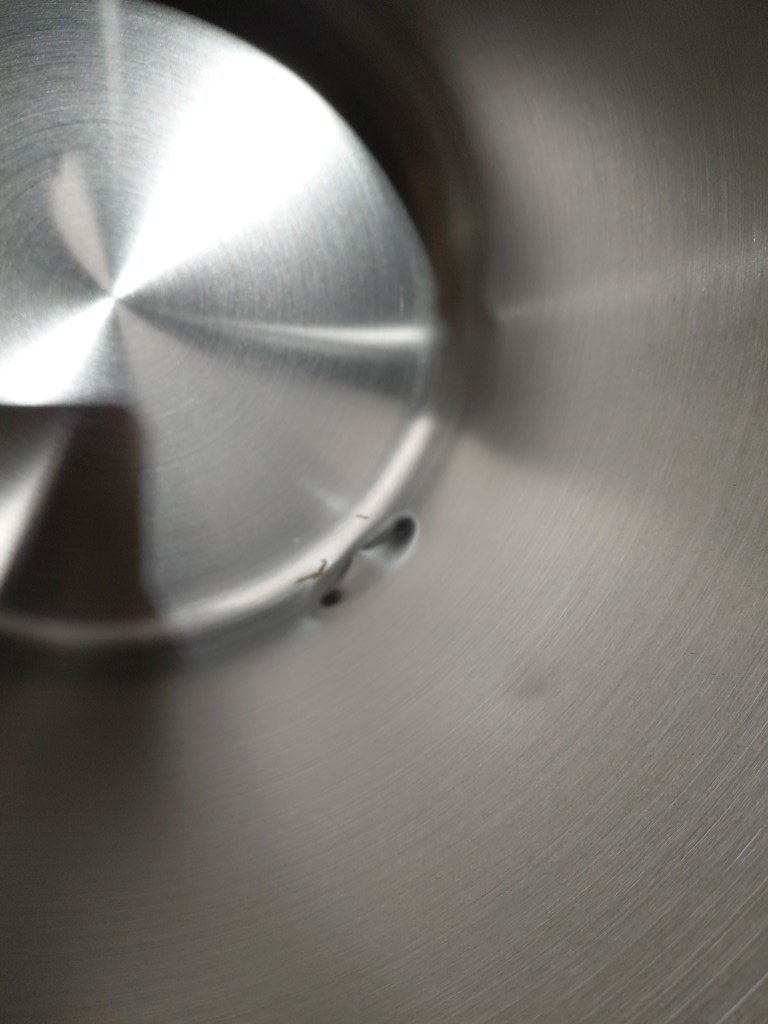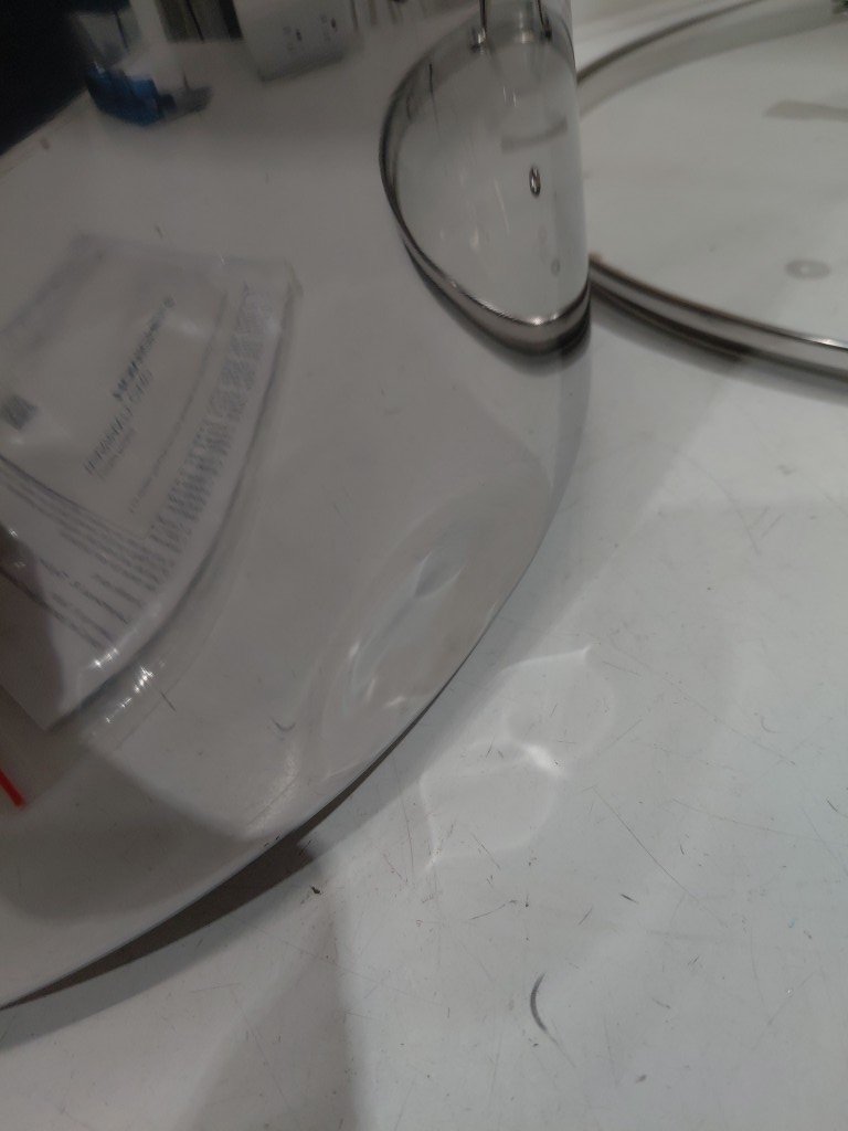 Small dent on the bottom, doesn't affect use of item (see photos)
