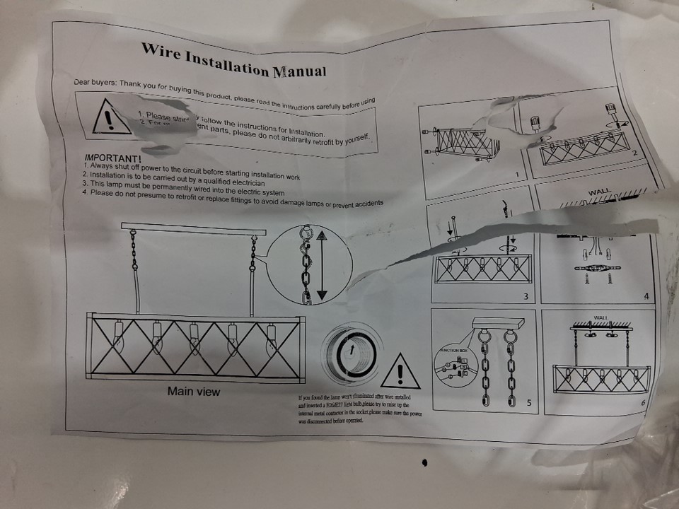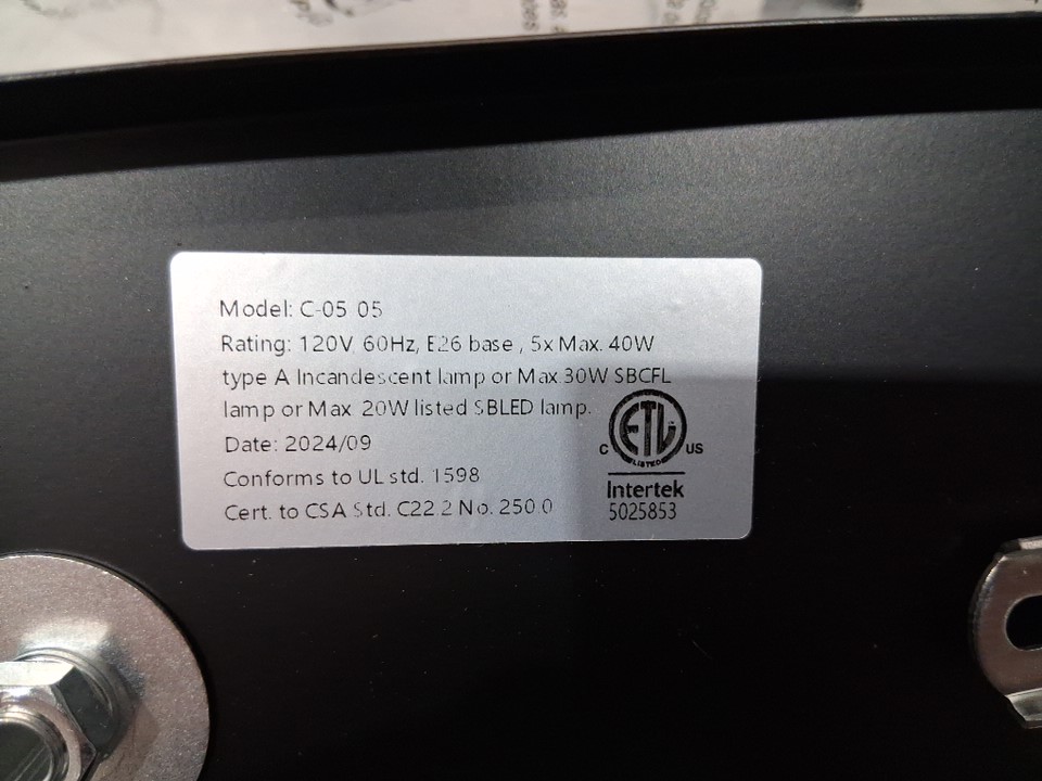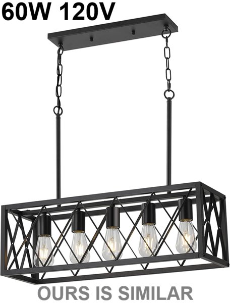 5 Lights Adjustable Height Industrial Pendant Lighting Fixture - 25" X 8.75" X 8.75" - 60W 120V - BLACK