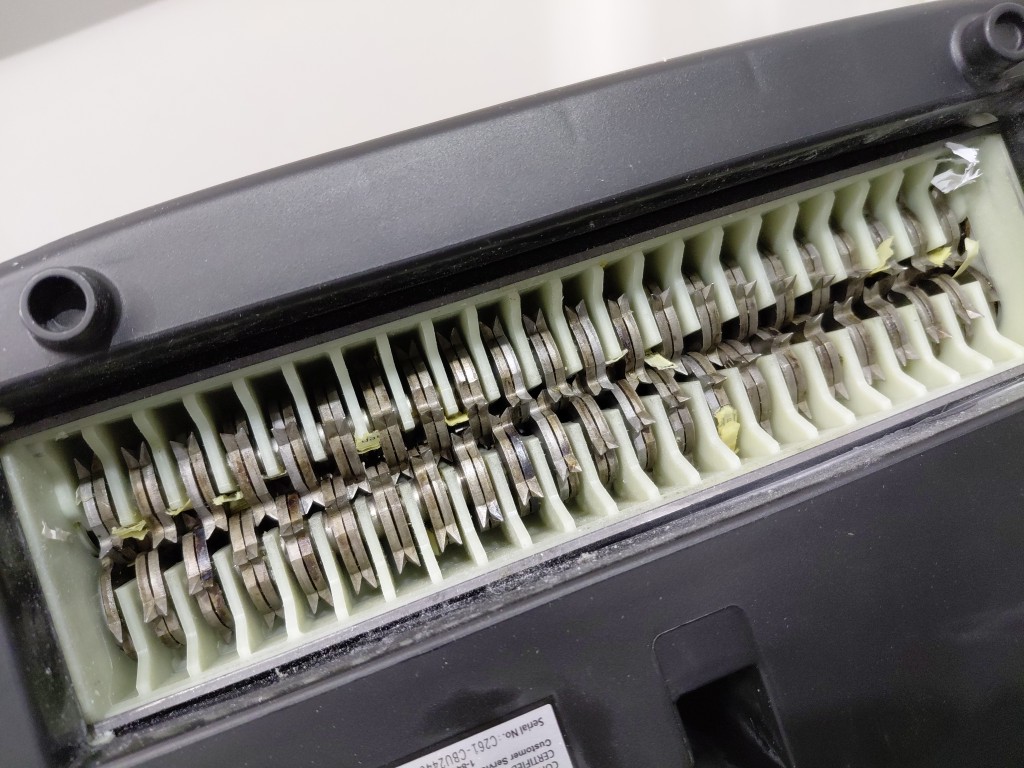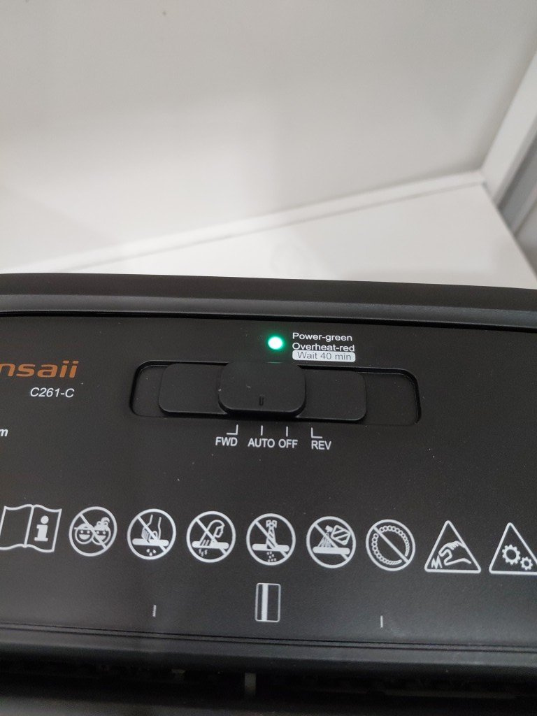 Some paper in shredder part from previous use (see photos) tested for power & function