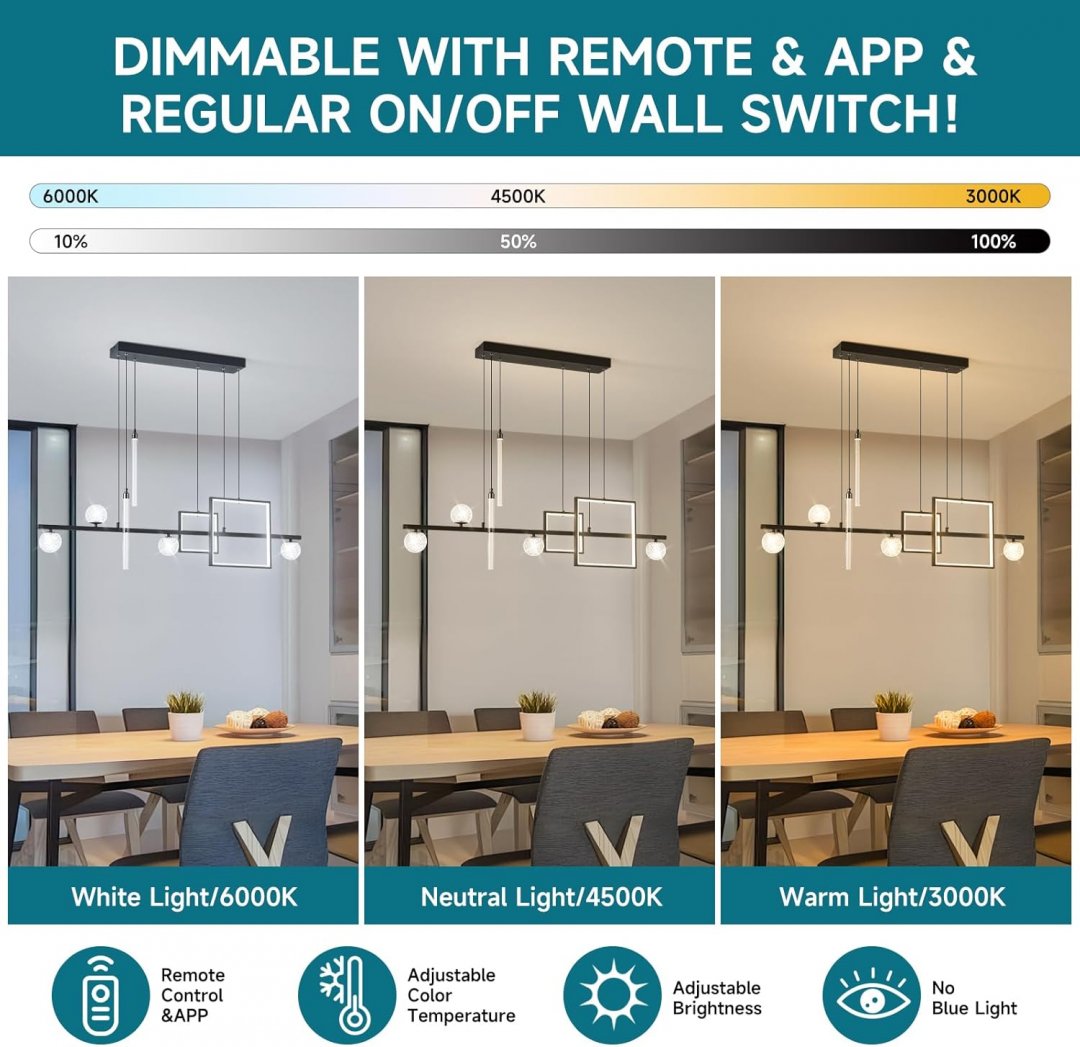 ORANOOR Modern DIMMABLE LED Pendant Lights with Remote- 47.24" - 3000K-6000K - black rectangle- (model: 8417)