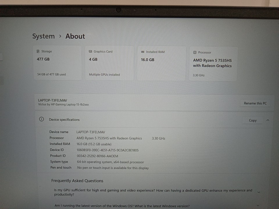 HP VIctus full hd gaming laptop - 15.6" | ryzen 5 7535hs | 16gb ram | radeon rx 6550m | 512gb ssd - black - (model: 15-FB2063DX)