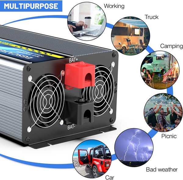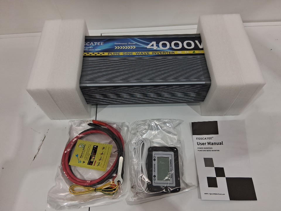 EGSCATEE Pure Sine Wave Inverter with 4 AC Outlets and remote control - 4000W 12V to 110V - silver (model: TH-12V-4000W)
