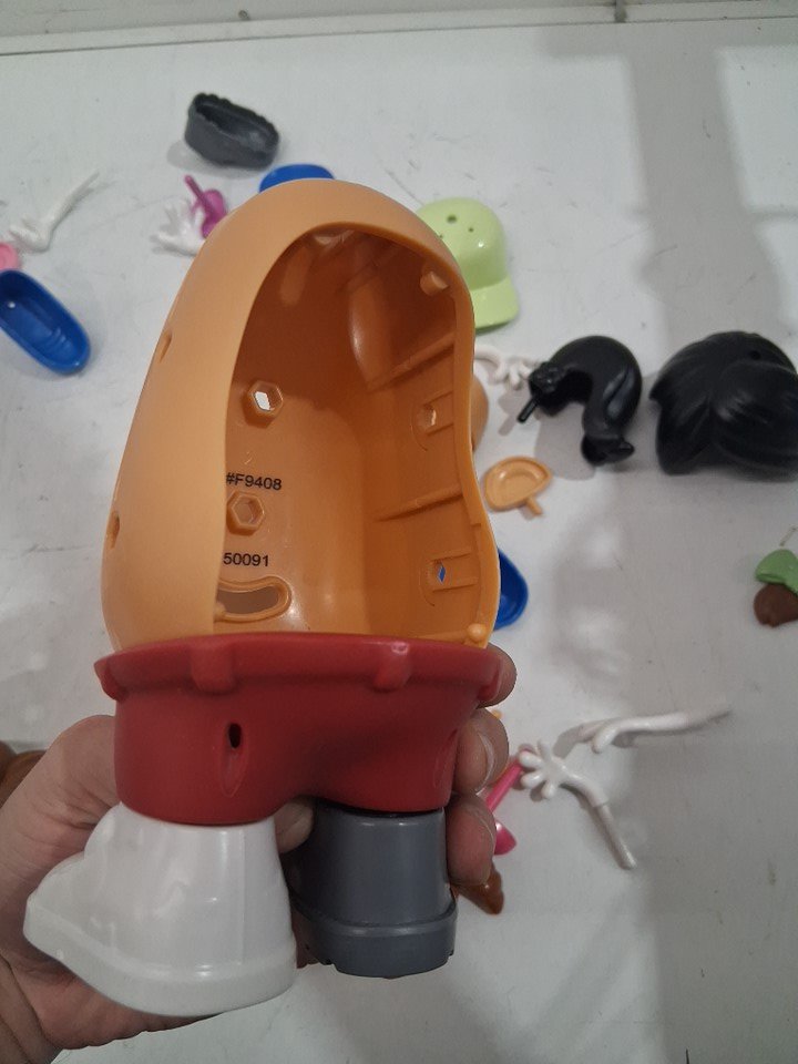 Potato's are missing the back piece which allows user to close the toy and store the items. Package was opened and it's possible a few pieces are missing