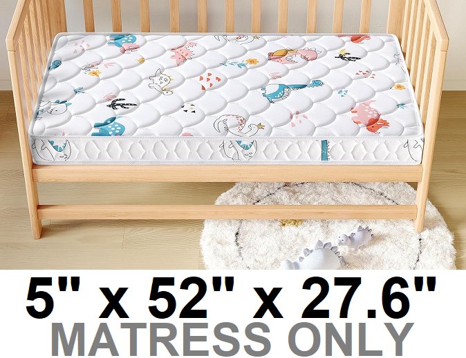 Letmxiu Premium Crib Mattress and Toddler Mattress - 5" x 52" x 27.6" - white/dinosaur (model: tq-04)
