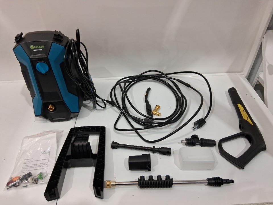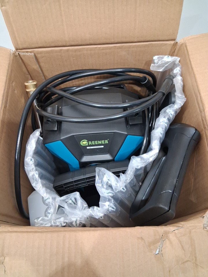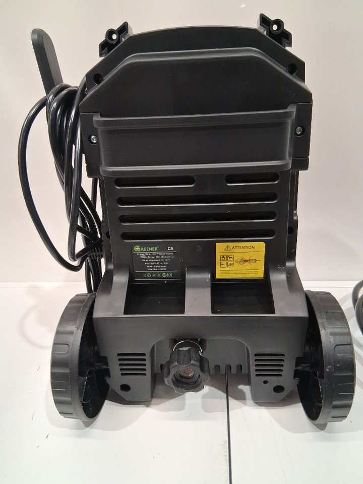 Item shows previous signs of use such as dirt/debris on wheels and moisture in unit. Item tested for power.