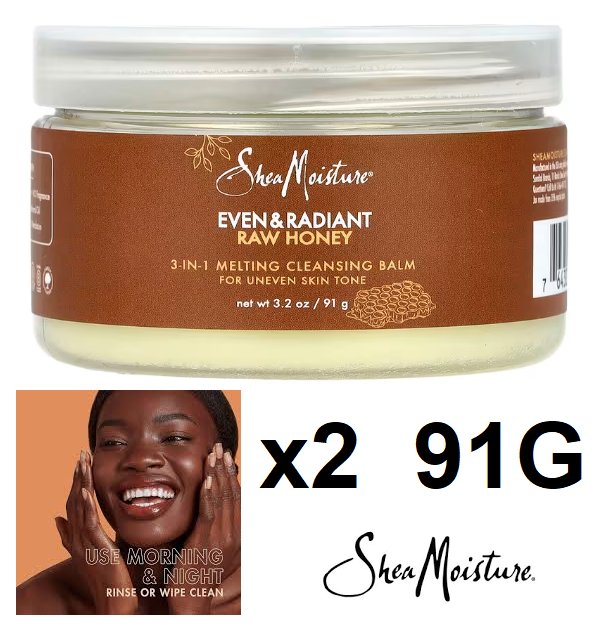 2 SHEA MOISTURE EVEN & RADIANTRAW HONEY 3 IN 1 MELTING CLEANSING BALM - 91G EACH