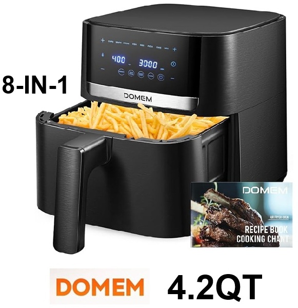 DOMEM 8-in-1 Multicooker Air Fryer with Non-stick Basket - 4.2QT - Black (Model: RA461D)