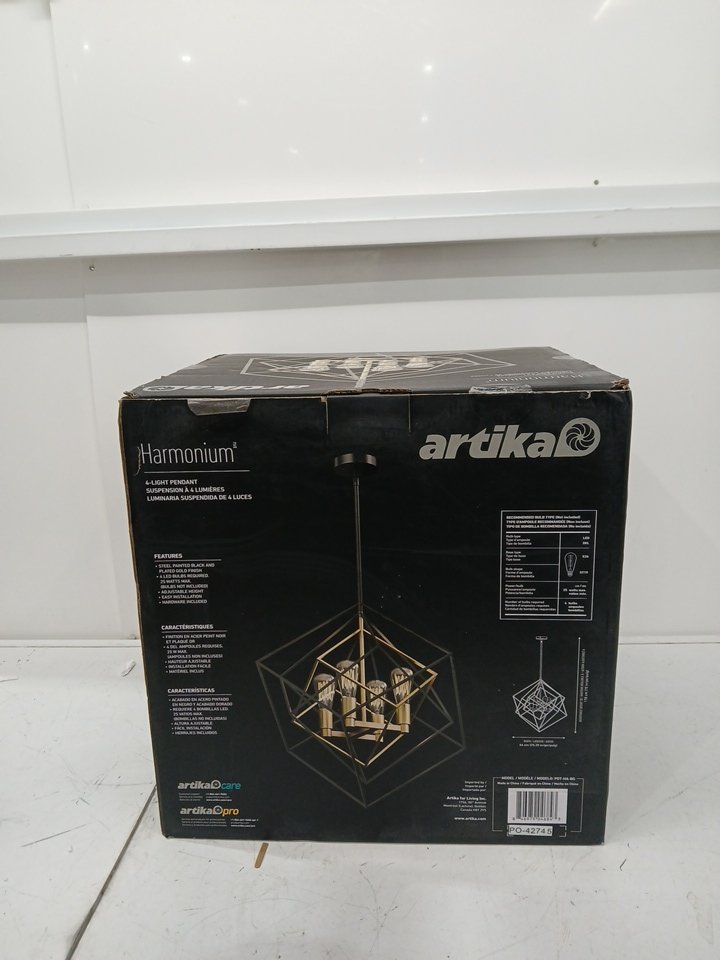 artika Harmonium Adjustable Geometric 4-Light pendant Chandelier - 36.5" to 72" x 25" - black/gold (model: PDT-HA-BG)