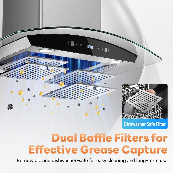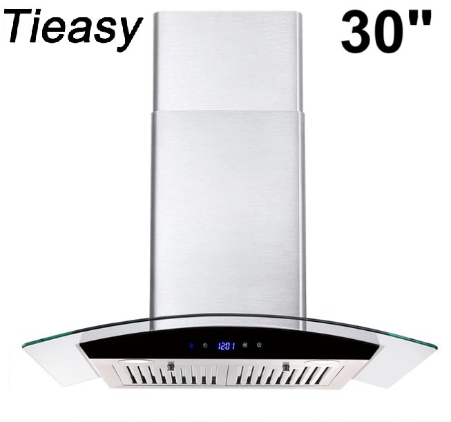 TIEASY WALL MOUNTED STAINLESS STEEL 3-Speed Kitchen RANGE HOOD WITH GLASS PLANEL - 30" - 110-120V - Silver/Black (MODEL: TG1875)