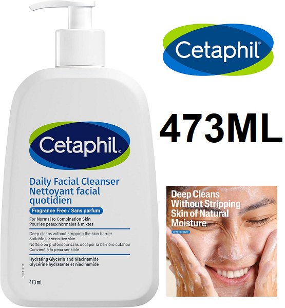 cetaphil daily facial cleanser, fragrance free - for normal to combination skin - 473ml
