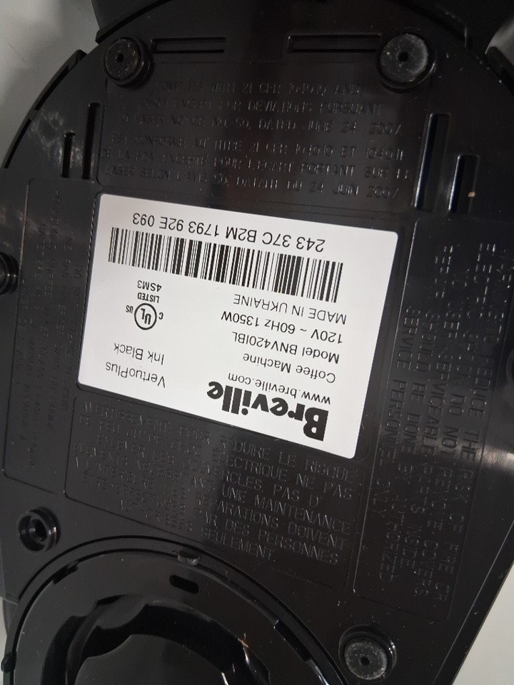 NESPRESSO BREVILLE VERTUOPLUS DELUXE COFFEE MACHINE - INK BLACK (MODEL: BNV420IBL1BUC1)