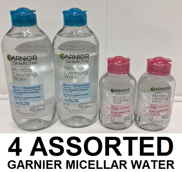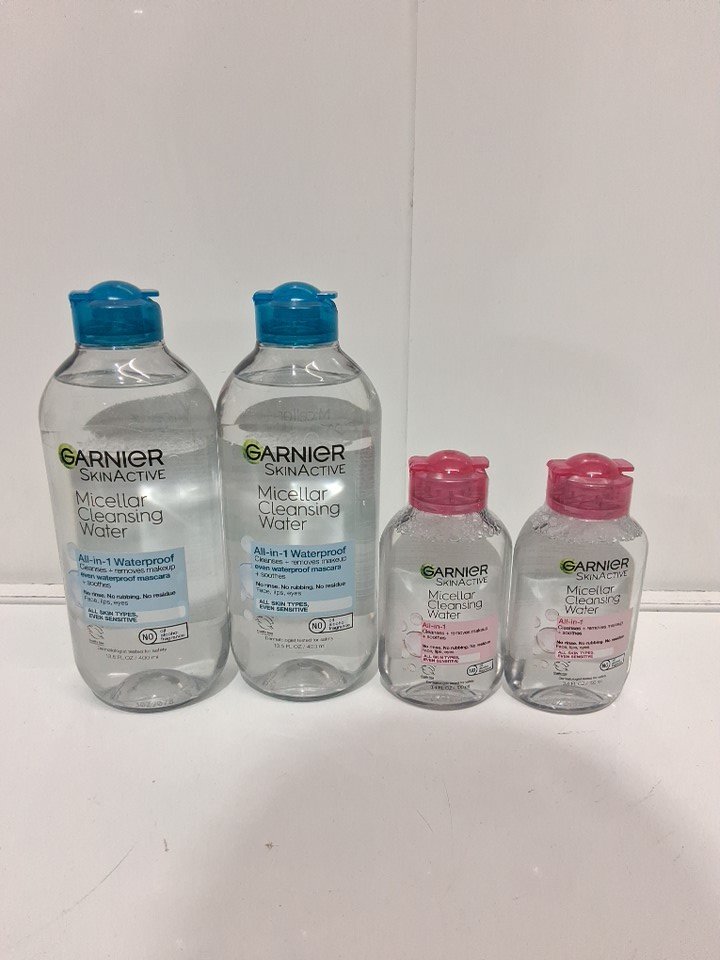 4 ASSORTED GARNIER MICELLAR WATER - ALL IN ONE WATERPROOF & ALL IN ONE + SOOTHES