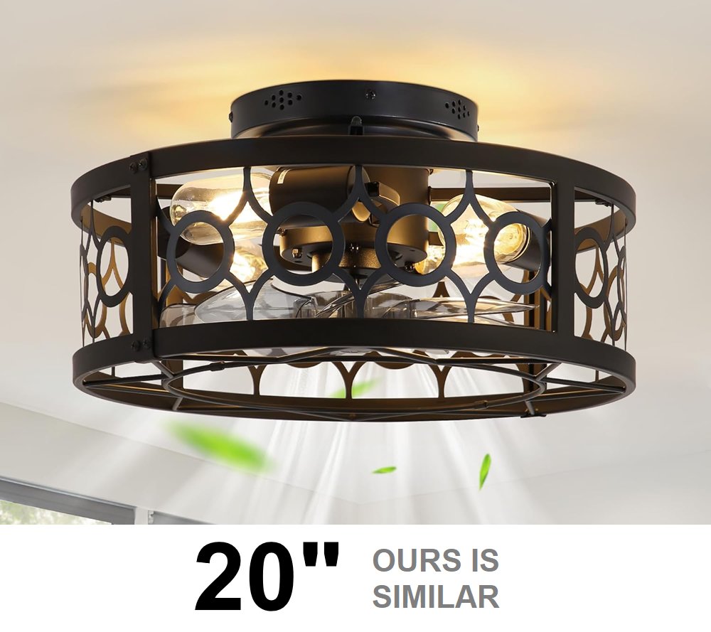Zardon Caged Ceiling Fan with Light and Remote, Reversible 6 Speeds - 20" - bronze finish (model:Y24FSD0036-4801)