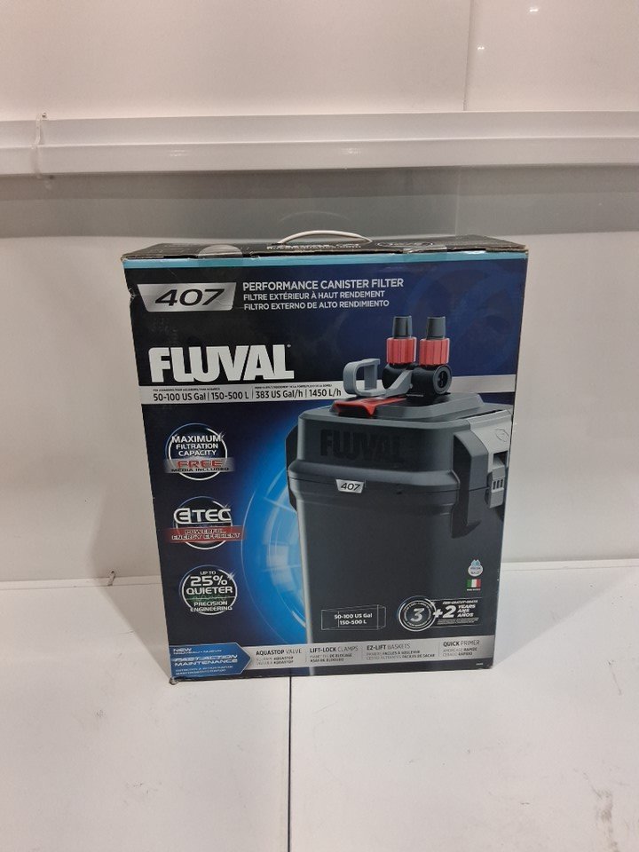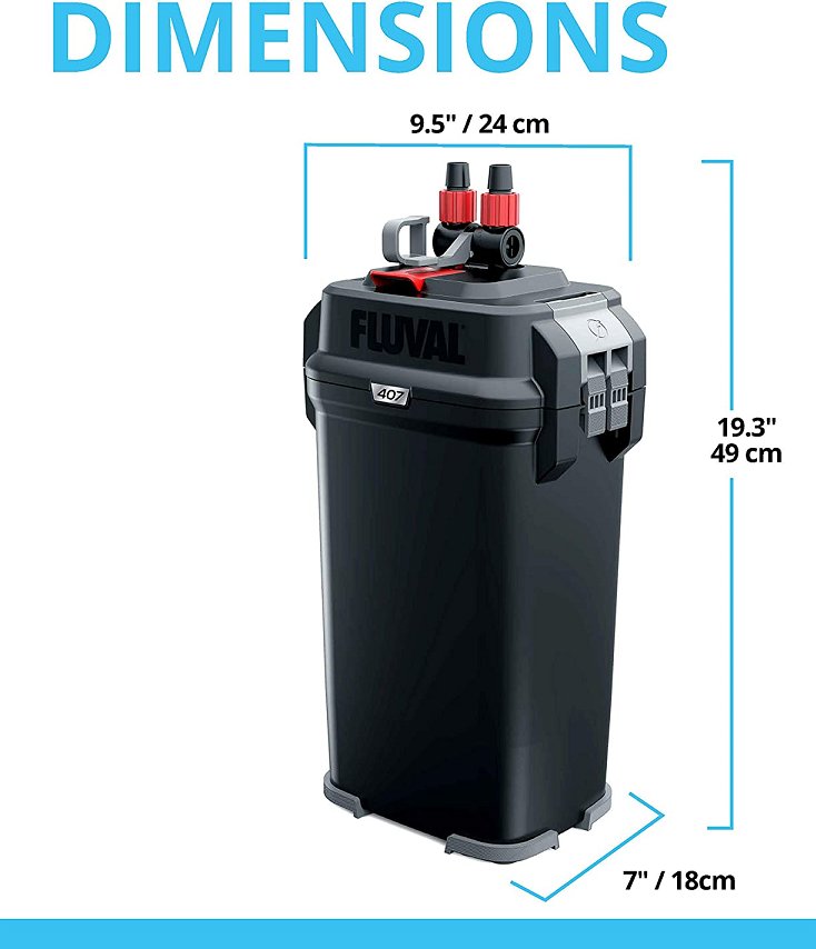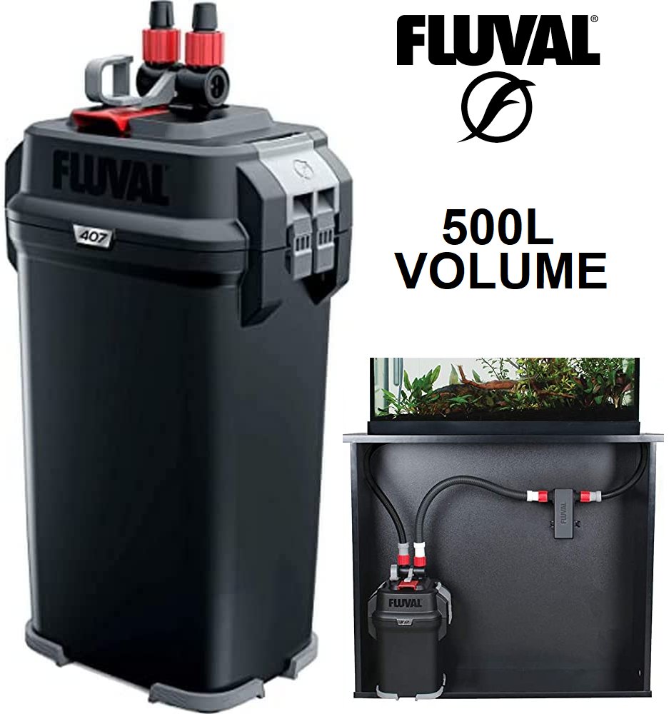 FLUVAL 407 PERFORMANCE CANISTER FILTER WITH ACCESSORIES, 500L/100 US-GAL VOLUME, BLACK/RED (MODEL:A450)