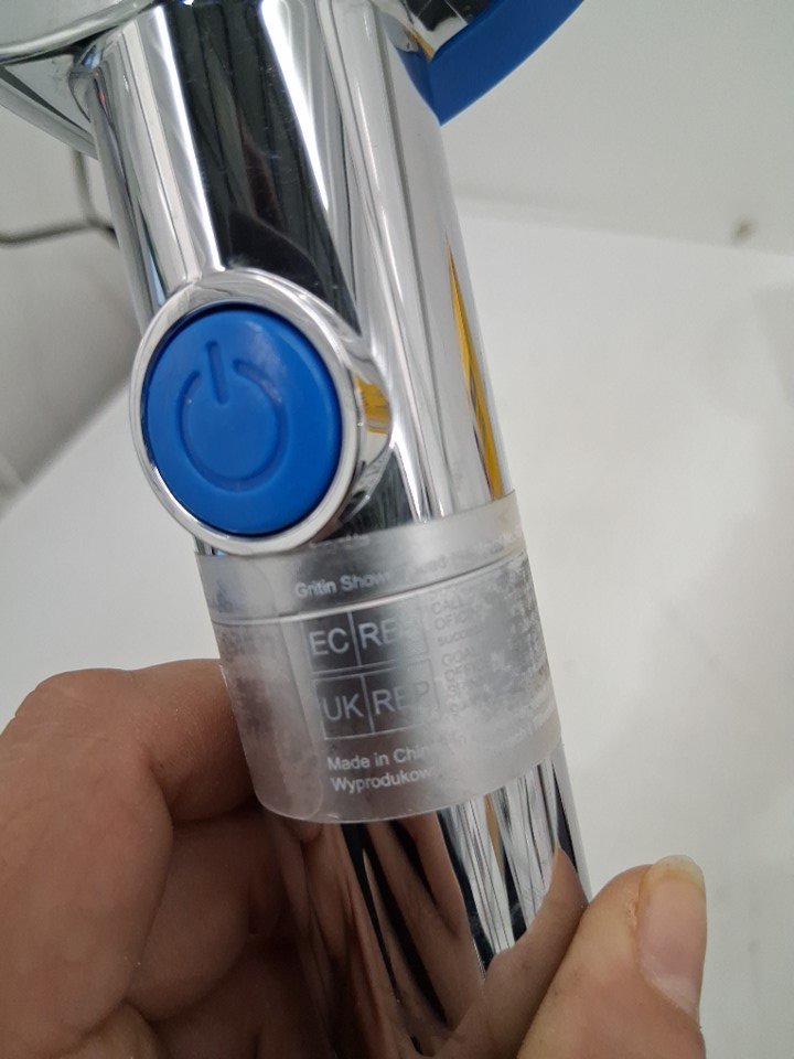 GRITIN SHOWER HEAD WITH ON/OFF BUTTON - 10.6" - SILVER / BLUE (MODEL: g3500)