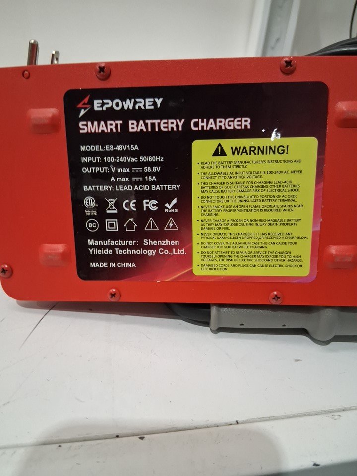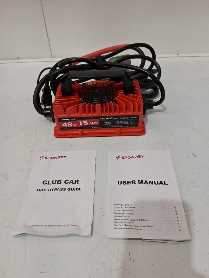 EPOWREY 48v golf cart battery charger for 15a club car with 3-pin round plug (model: e8-48v15a)