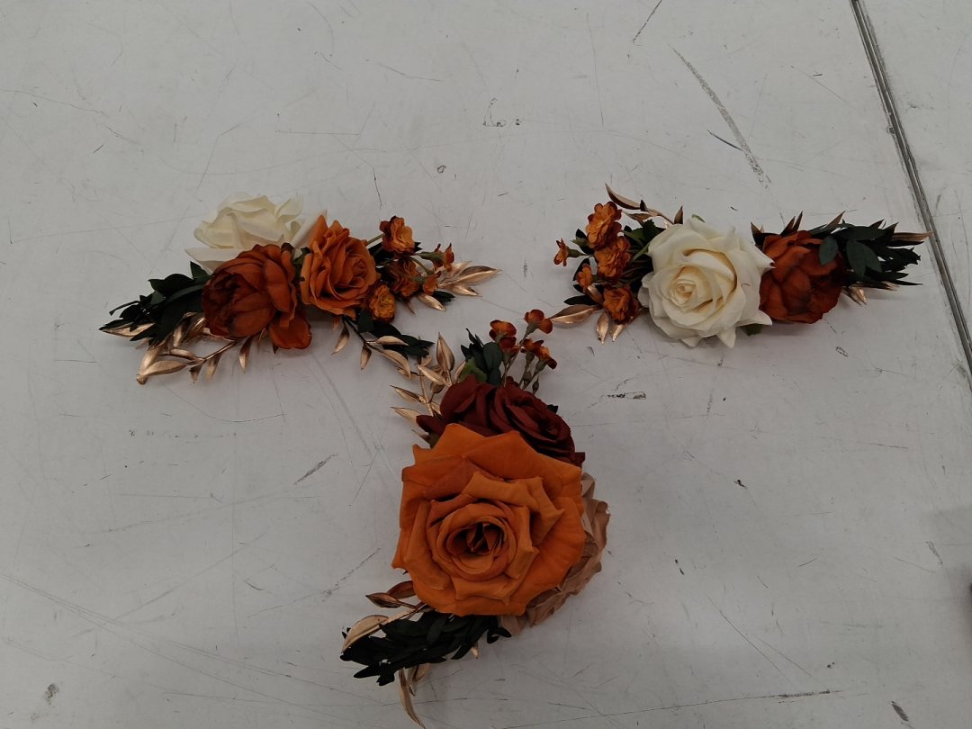 3PC Ringlong Rose Cake Topper For weddings or Birthday - Burnt Orange/Red (Model: