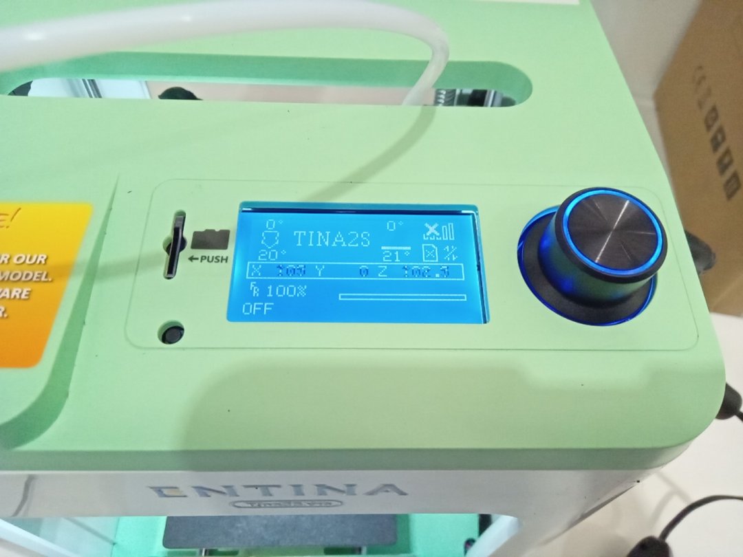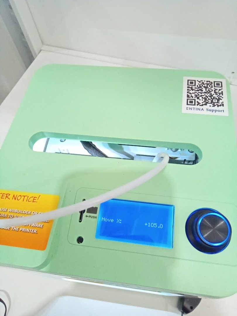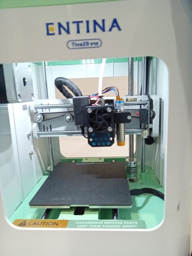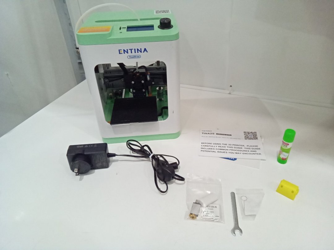 Residual filament on the plate and stickers stuck on sides from prior use. Tested for basic function/power only.