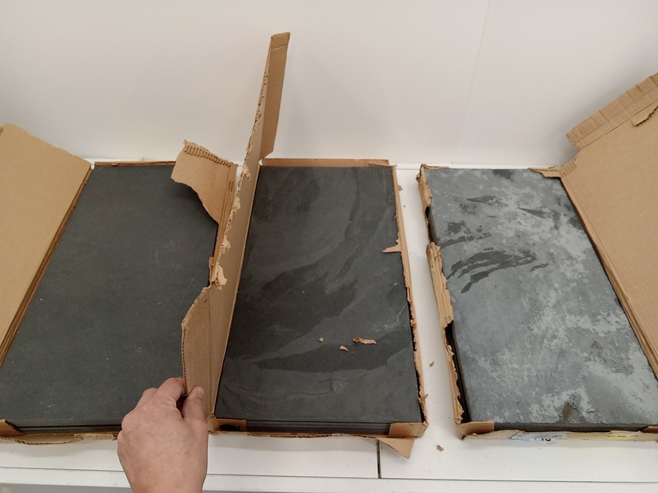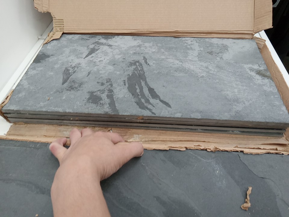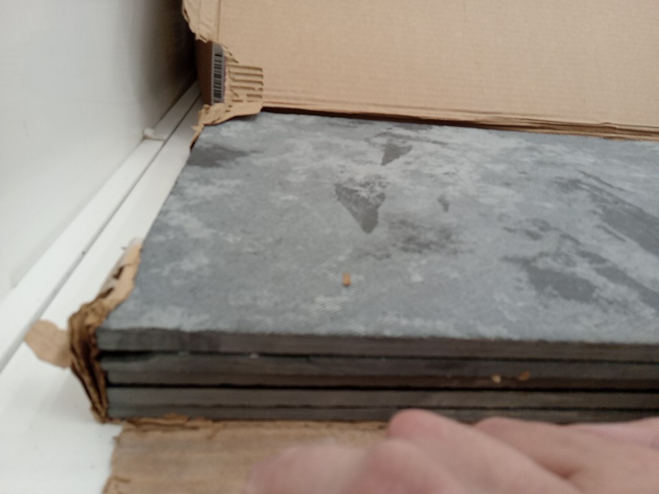 Item appears new and unused. Some corner edges have some minor chips and there also may be some minor water stains as a result from shipping.