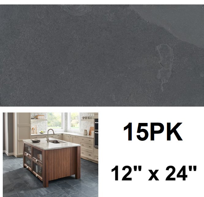 15PK MSI Surfaces Rectangle Natural Textured Stone Look Gauged Slate Floor And Wall Tiles - 12" x 24" - Montauk Black