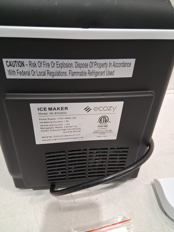 ECOZY PORTABLE COUNTERTOP ICE MAKER - MAKES 26LBS A DAY - 115V - black (MODEL: IM-BS260C)