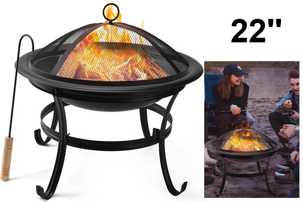 Onlyflame Steel Lightweight BBQ Grill Firepit Bowl with Spark Screen Cover - 22'' - black