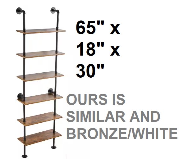 Industrial wall mounted pipe shelf 6-tier - 65" x 18" x 30" - Bronze/white
