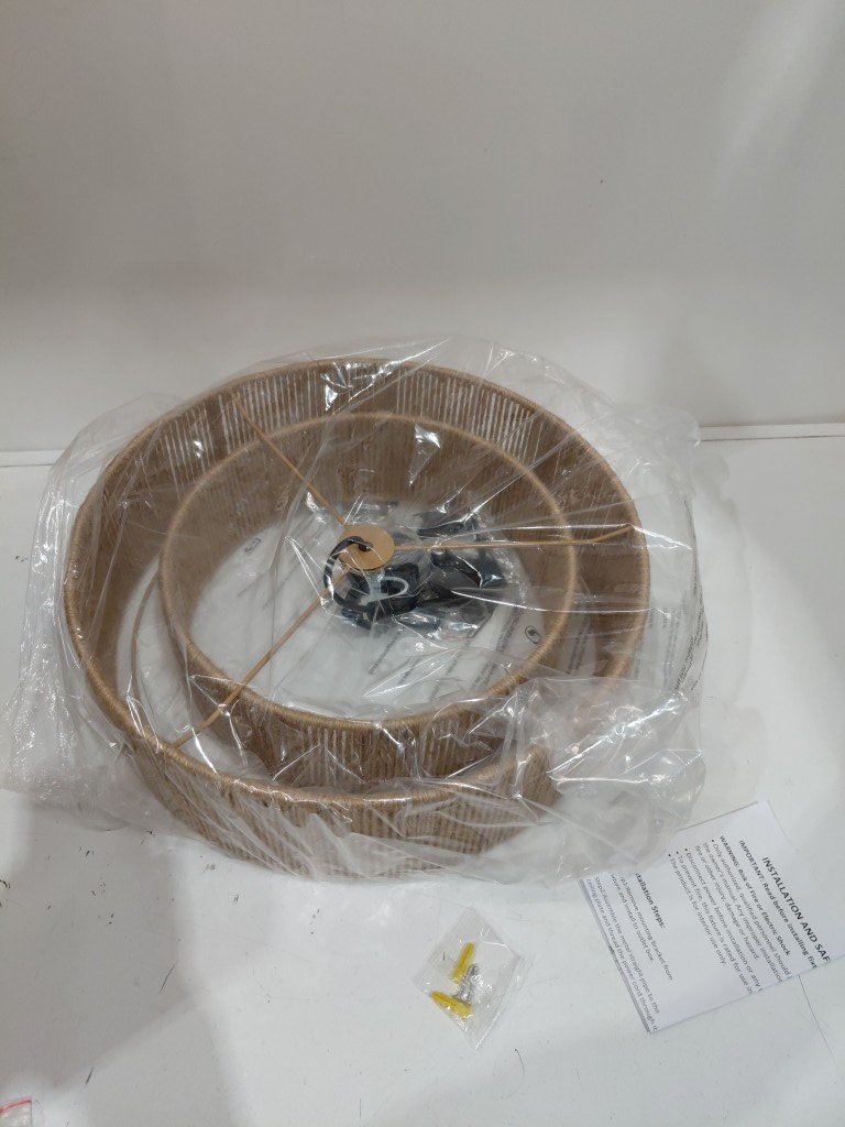 fenluster ceiling mount Rustic Rattan boho style light fixture - 12.6" - black/natural brown