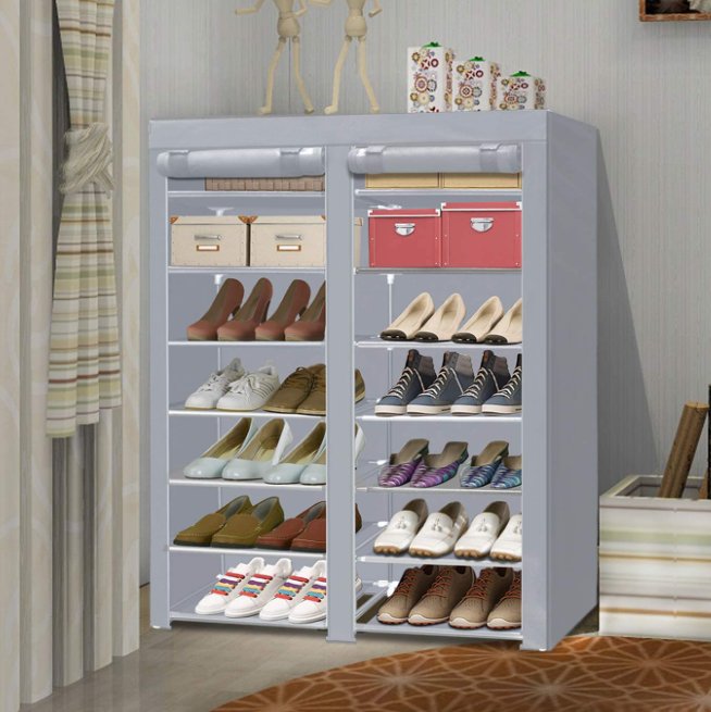 JIUYOTREE 7-TIER NONWOVEN FABRIC SHOE RACK CABINET 49" x 36" x 11" - GREY (MODEL:XG127)