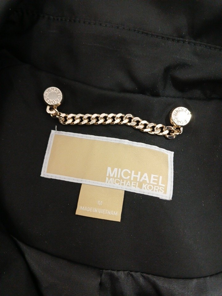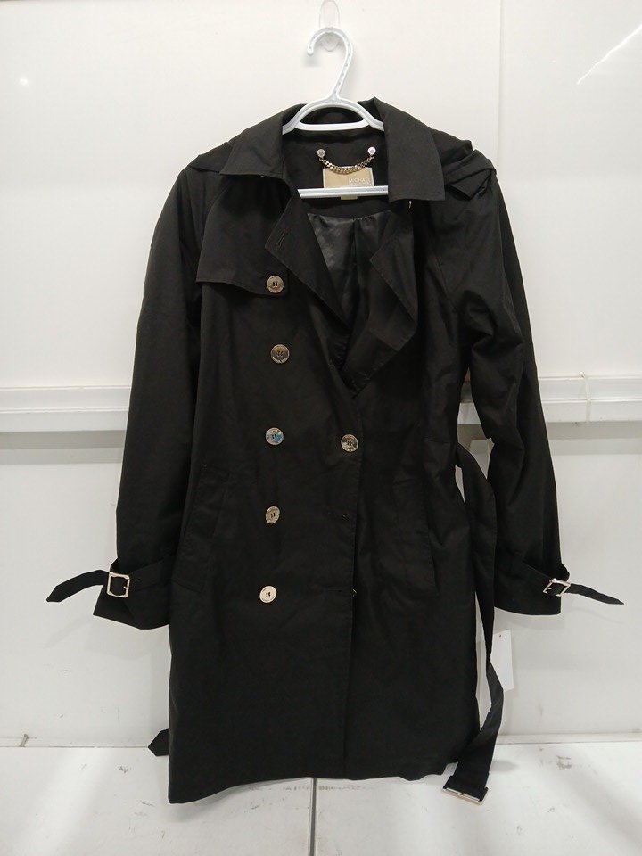 women's michael kors double button trench coat with detachable hood - medium - black (style: M726036T93)