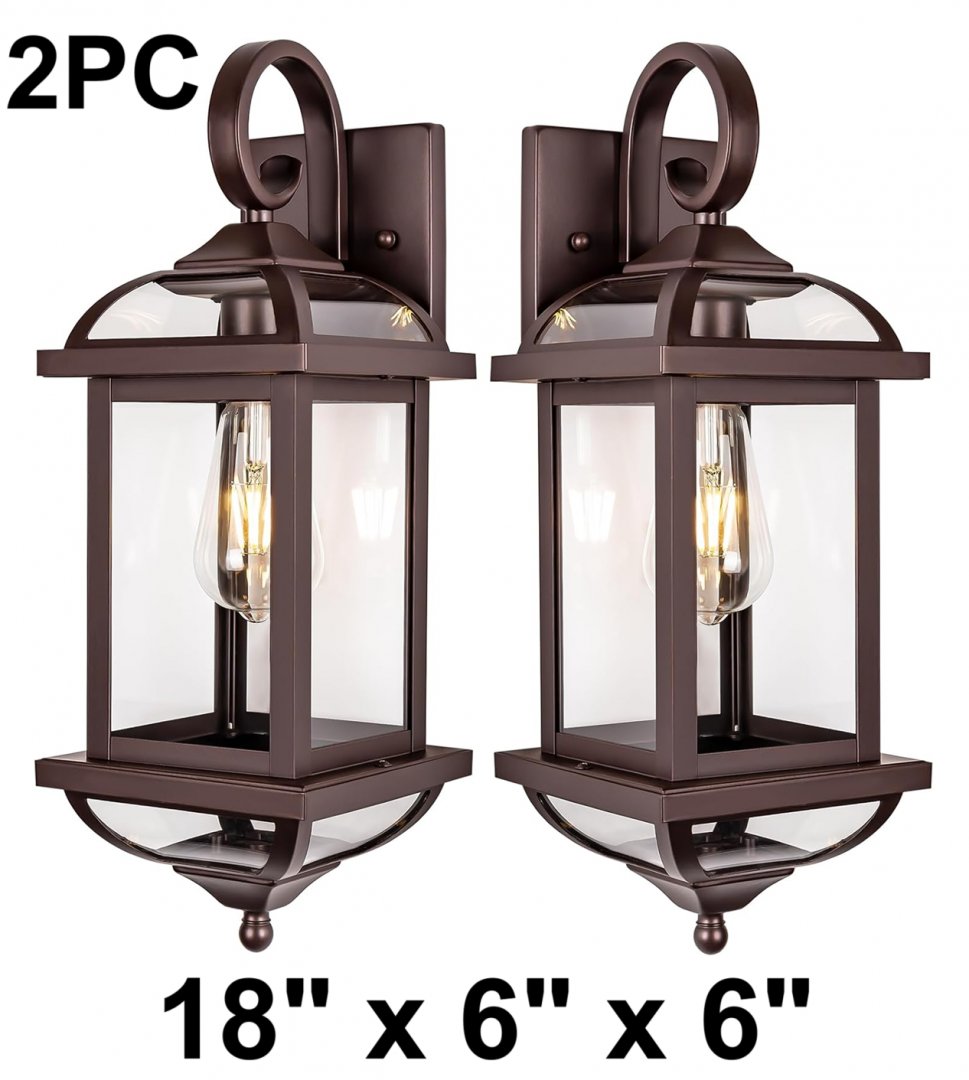 2PK Roravilila Large Outdoor Exterior Wall Lantern Light Fixtures - 18" x 6" x 6" - Bronze (Model: B07049P)