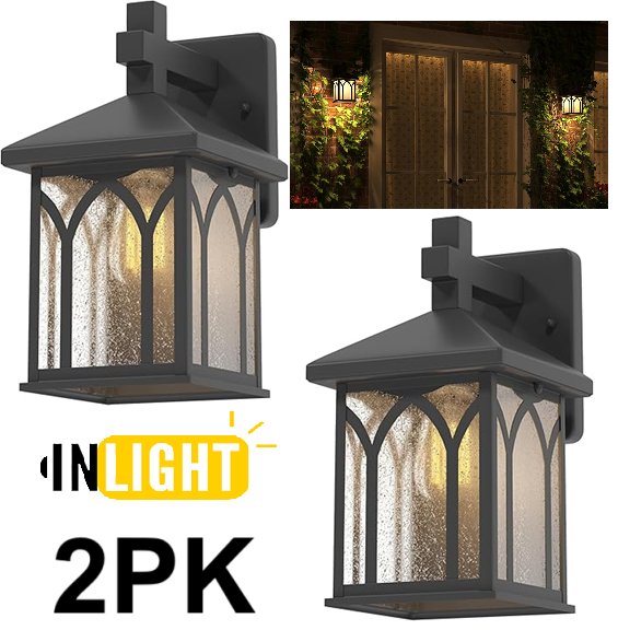 2pk Inlight medium base durable alminium Seeded Glass Outdoor Wall Lantern - Matte Black (model- IN-0603-1-BK)