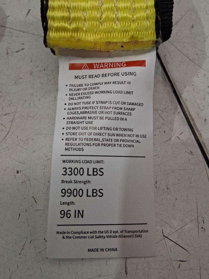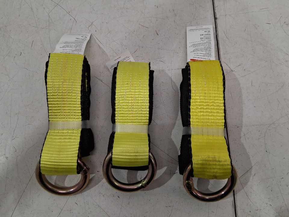 3pk ratchet tie down lasso straps - 2" x 96" - 3300lb working - 9900lb breaking - yellow/gold
