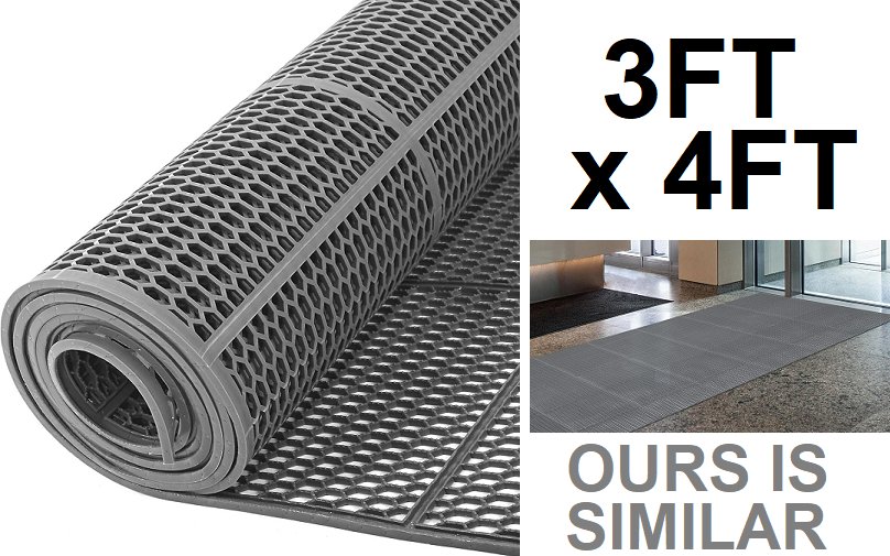 Commercial Non-Slip Drainage RUNNER RUG - 3FT x 10FT - grey