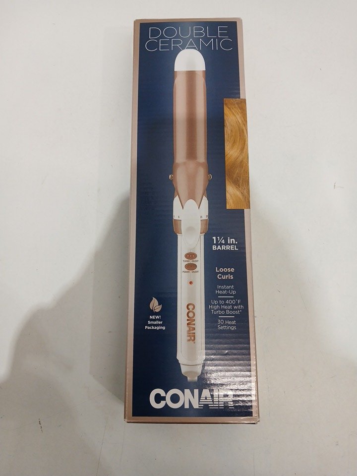 CONAIR DOUBLE TURBO HEAT CERAMIC FLAWLESS WAVES CURLING WAND HAIR STYLER - 1" - WHITE/ROSE GOLD (MODEL: CD705GNC)