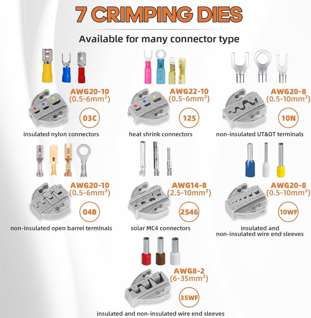 9PC KF CPTEC Ratcheting Crimping Tool Set WITH Quick-Exchange Jaws
