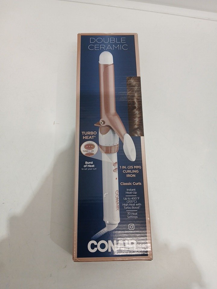 CONAIR DOUBLE CERAMIC CURLING IRON - 1 1/2" - WHITE/ROSE GOLD (MODEL: CD703GN)